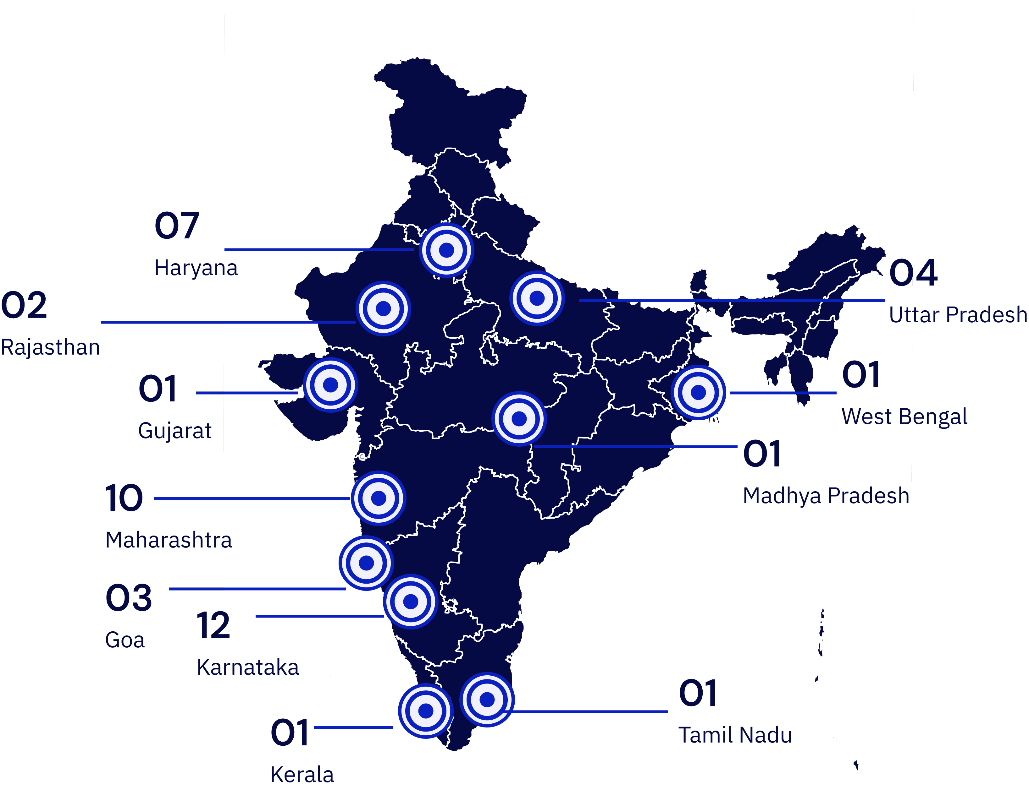 Our investments in these companies have led to significant job creation, breakthrough innovations, and transformative growth across industries and geographies. This map highlights SucSEED’s commitment to nurturing India's entrepreneurial talent and expanding our footprint into every corner of the country’s vibrant startup ecosystem. Explore the regions and discover how SucSEED’s portfolio is building India’s tech-driven future.